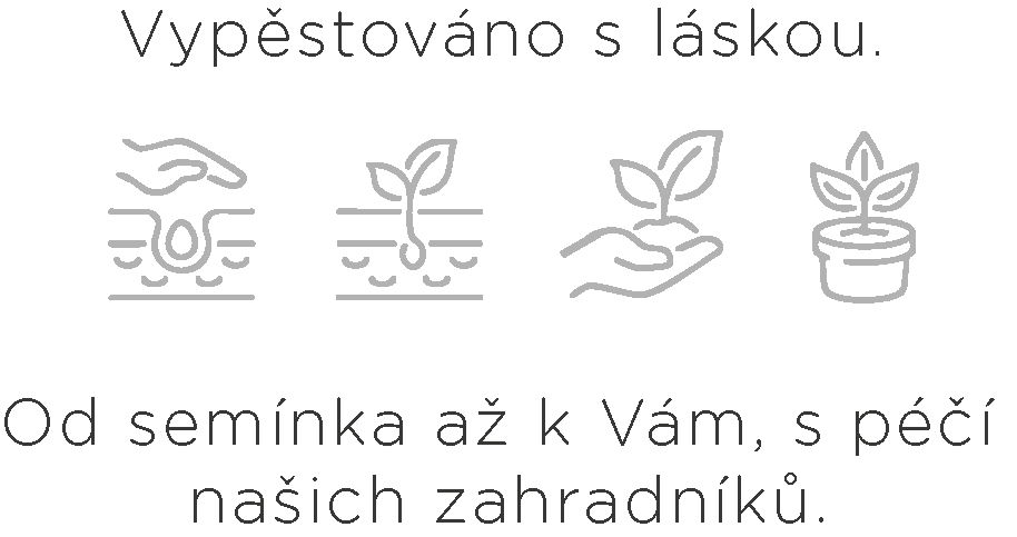 Symbol Šťastná rostlina je výsledkem lásky a péče našich zahradníků, kteří ji vypěstovali od semínka nebo řízku v našich vlastních zahradnictvích.
